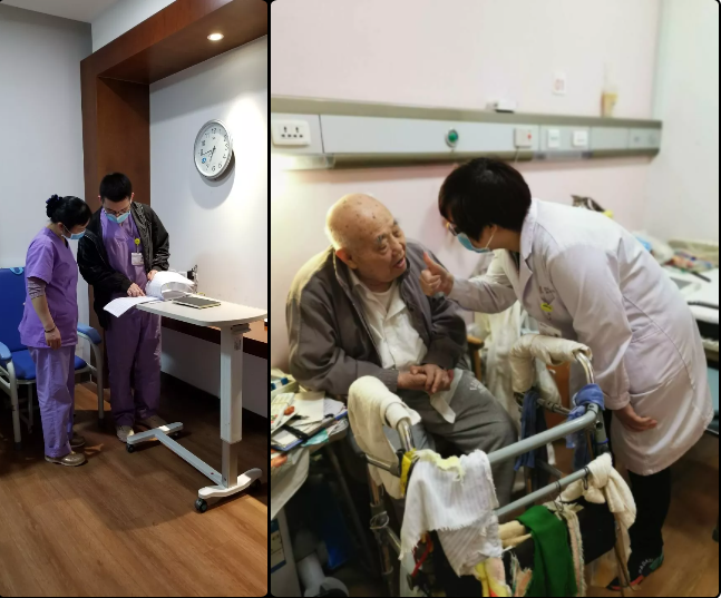 “我們同吳女士進行了反復、大量的溝通,并答應她,無論她先生做哪項護理檢查,護理員都會拍實時的視頻發(fā)給她,并由她確認。”工作人員說到。最終,吳女士看到視頻中醫(yī)護人員對自己先生的悉心照料后,從不支持轉變?yōu)槔斫猓笃谝彩峙浜显簝鹊墓ぷ鳌?/p>