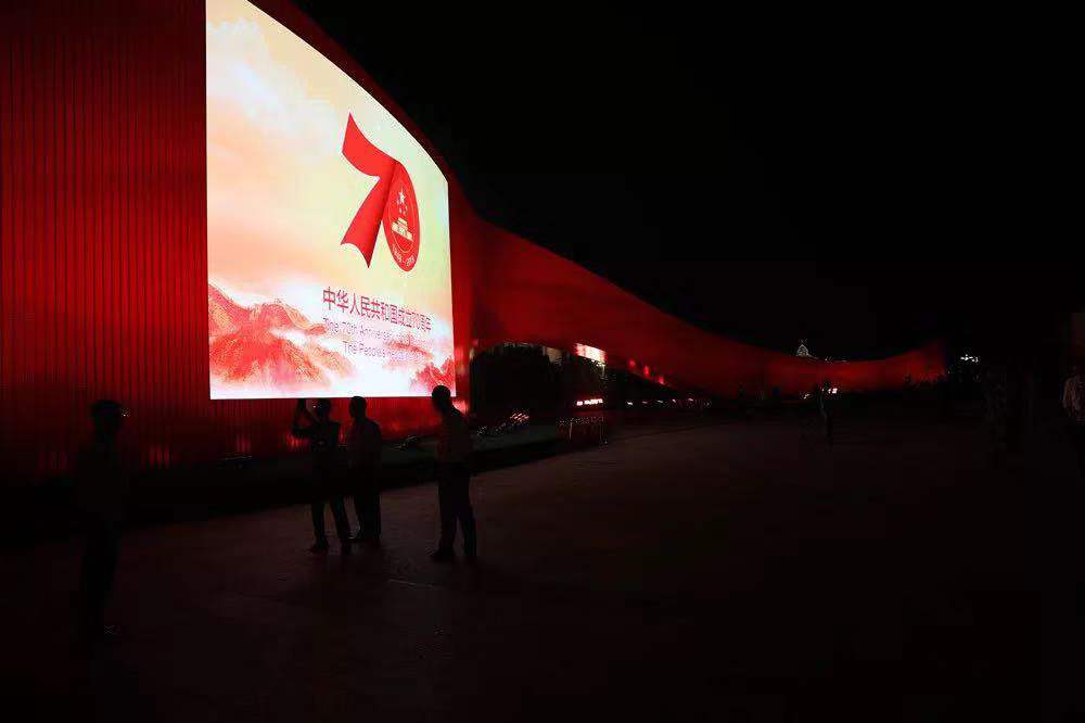 6塊4k超高清大屏上播放的視覺背景,既要符合“建國創(chuàng)業(yè)”、“改革開放”、“偉大復(fù)興”的主題,又要在絕不“喧賓奪主”的情況下配合游行方陣的推進,內(nèi)容大到包羅新中國70年歷史的點點滴滴,小到每一幀畫面的精益求精……甚至于屏幕色調(diào)的明暗都需要一點點打磨推敲,在“摸著石頭過河的情況下”,一場爭分奪秒的創(chuàng)作任務(wù)拉開帷幕。