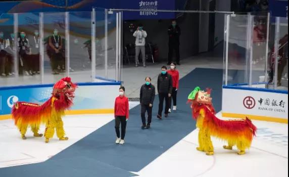 冰球比賽中融入的中國元素更是精彩紛呈。五棵松體育中心舉行的冰球比賽中,體育展示團隊充分發(fā)揮了賽場“氣氛組”的作用,開場音樂選用了《女駙馬》和《貴妃醉酒》,在傳統(tǒng)戲曲的基礎(chǔ)上加上電音元素,使得音樂效果更符合年輕人和外國觀眾的審美。而在同樣承接冰球項目的國家體育館中,體育展示團隊在現(xiàn)場娛樂表演項目中融入了傳統(tǒng)舞獅表演,并由兩只“獅子”迎接頒獎嘉賓與運動員入場,為現(xiàn)場增色不少,博得了全場掌聲。