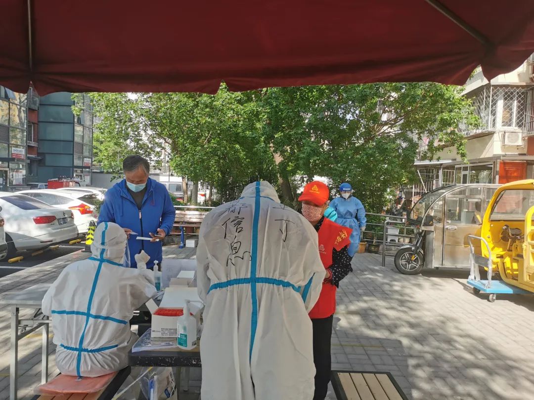 北科建集團(tuán)張學(xué)民同志在石佛營南里社區(qū)協(xié)助開展核酸檢測(cè)工作