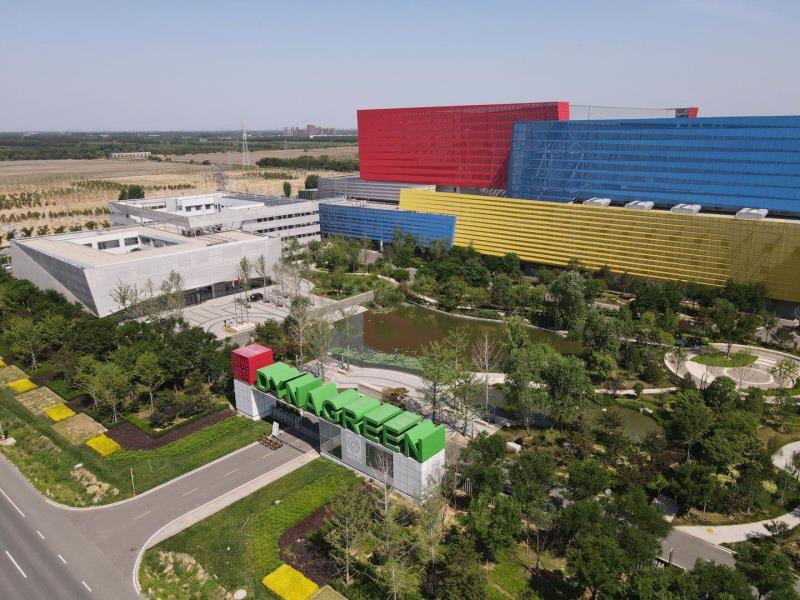 如同大門造型的煙囪高82米,已成為周邊的一處地標性建筑。站在68米的觀景平臺,近可俯瞰園區(qū)全貌,綠意蔥蘢,往北遠眺是城市副中心和通州區(qū),往南是廊坊城區(qū),往東則是天津市武清區(qū)。