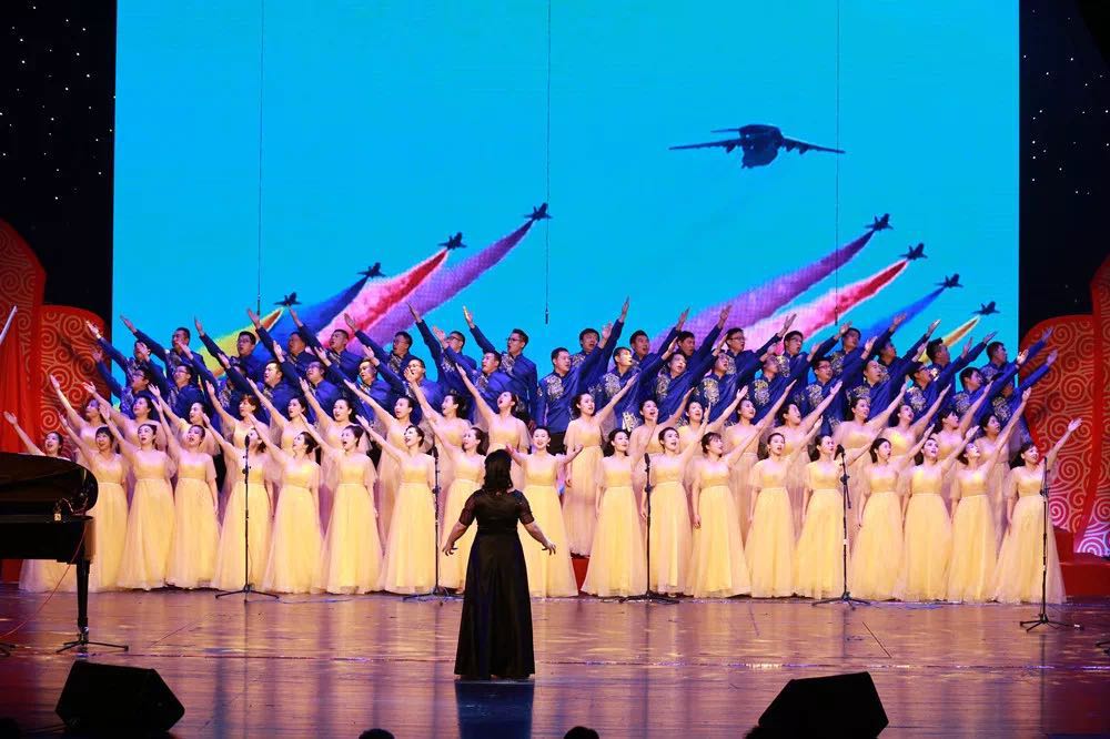 由北演公司和水晶石聯(lián)合組成的合唱團(tuán)以歌曲《我和我的祖國》,為偉大祖國的崛起放聲歌唱。