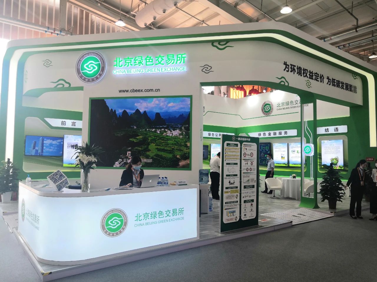 北京綠色交易所以“為環(huán)境權(quán)益定價(jià) 為低碳發(fā)展賦能”為參展主題,在展區(qū)通過(guò)互動(dòng)大屏、智能機(jī)器人等多重科技元素展現(xiàn)了北京綠色交易所在環(huán)境權(quán)益交易、綠色公共服務(wù)、低碳發(fā)展服務(wù)和綠色金融服務(wù)等方面開展的創(chuàng)新探索。