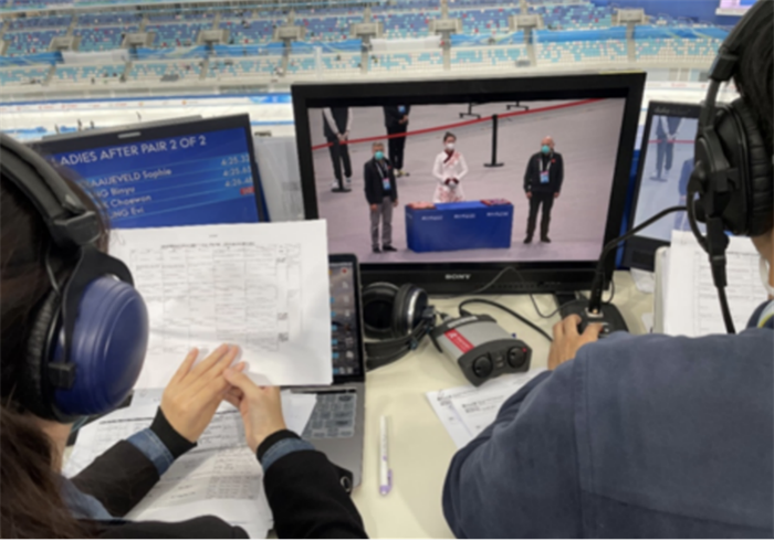 本次比賽為今年首場北京冬奧國際測試賽,為順利完成賽事體育展示服務(wù)保障工作,北奧集團(tuán)在冬奧組委文化活動部的指導(dǎo)下,結(jié)合賽程賽制,積極研討競賽日工作重點(diǎn),在賽前制定完善詳盡的體育展示腳本和賽時保障工作方案,并攜手所屬企業(yè)水晶石公司以及來自加拿大的場館制作人艾米、音樂總監(jiān)丹尼爾組建了一支19人的體育展示工作團(tuán)隊(duì)。
