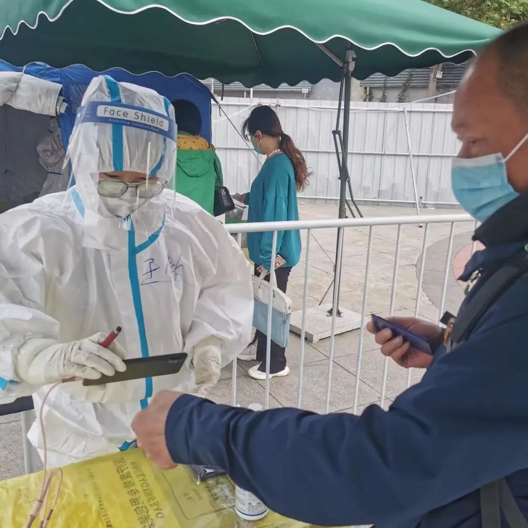 “下沉一線是難忘的經(jīng)歷,更是難得的歷練”,王丁始終以高標(biāo)準(zhǔn)嚴(yán)格要求自己。天氣熱,“武裝”確不能馬虎,為了減少上廁所的頻次,王丁經(jīng)常一悶就是6個小時,一口水都不能喝。王丁說:“穿上防護服的那刻我體會到了‘大白’的不容易”。由于小馬廠社區(qū)含有養(yǎng)老服務(wù)站等原因,居民多是老人。王丁耐心地為居民解決核酸采樣中遇到的問題,細(xì)致地錄入核酸采集信息,確保核酸檢測結(jié)果能夠準(zhǔn)確的關(guān)聯(lián)居民健康寶,截至目前已協(xié)助完成核酸檢測近萬人次。