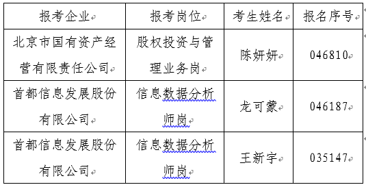 根據(jù)《北京市國(guó)有資產(chǎn)經(jīng)營(yíng)有限責(zé)任公司2023年度“優(yōu)培計(jì)劃”招聘公告》,考生筆試成績(jī)超過合格分?jǐn)?shù)線(60分),且通過資格復(fù)審的參加本次筆試;按照上述要求,本次面試考生名單如下: