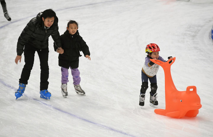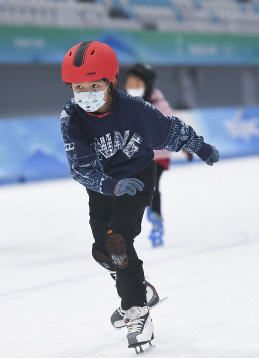 1月22日是農歷正月初一,人們來到國家速滑館“冰絲帶”滑冰,樂享新春假期。