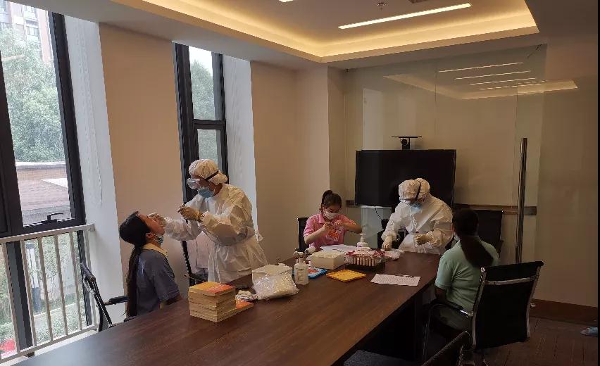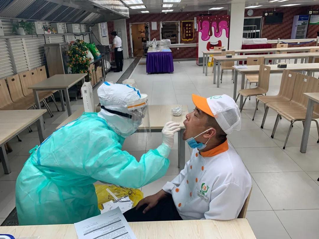 對全體人員及其共同生活居住人員近14天是否到過重點區(qū)域、是否有相關(guān)人員密切接觸史進行全面排查,組織全體人員共計214人進行核酸檢測。
