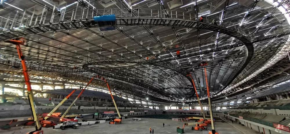 經(jīng)過(guò)建設(shè)者們的艱苦努力,從2018年至今“冰絲帶”先后完成了“精耕細(xì)作”、“拔地而起”、“編織天幕”和“絲帶飛舞”。